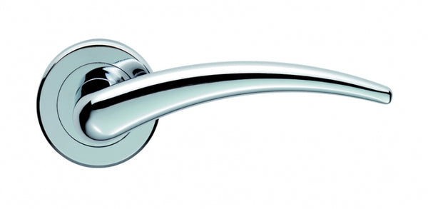 Rose: 51x10mm Lever Length: 120mm Projection: 55mm Finish: Polished Chrome This lever handle is from the Serozzetta-M range from Carlisle Brass. It is on a round screw on rose with...
