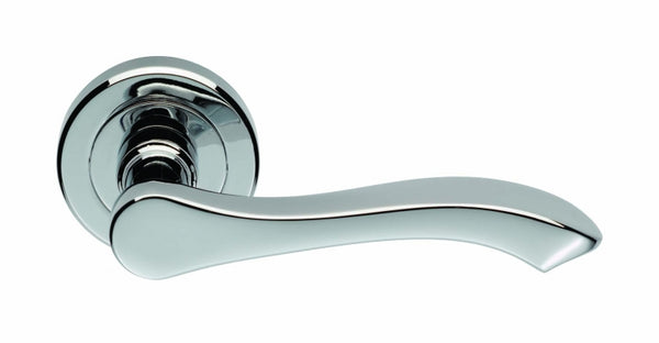Rose: 51x10mm Lever Length: 110mm Projection: 60mm Finish: Polished Chrome This lever handle is from the Serozzetta-M range from Carlisle Brass. It is on a round screw on rose with...