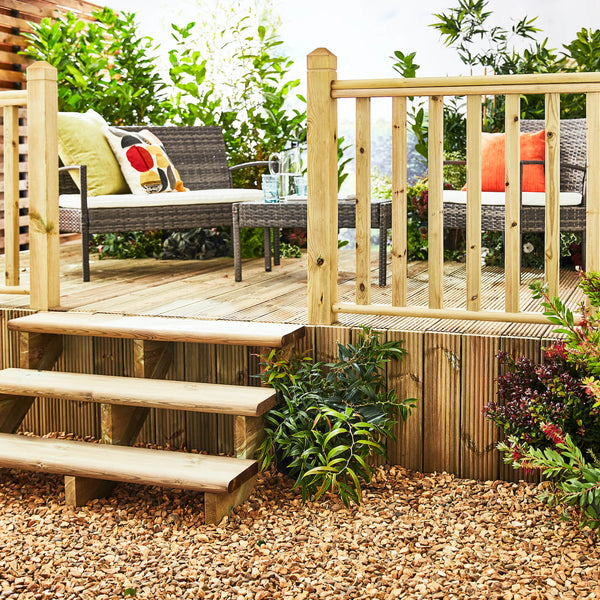 Tanalised Decking Newel Post. 85mm square with detailed top. 1.2mtr in length.All our decking newel posts are finished to a high standard and pressure treated.