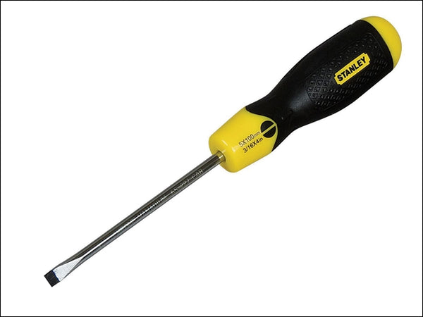 Type - Flared Tip size 5mm Blade Length 100mm (4 in)The Stanley Cushion Grip Flared tipped screwdrivers have a chrome plated bar which is corrosion resistant and magnetic tips for...
